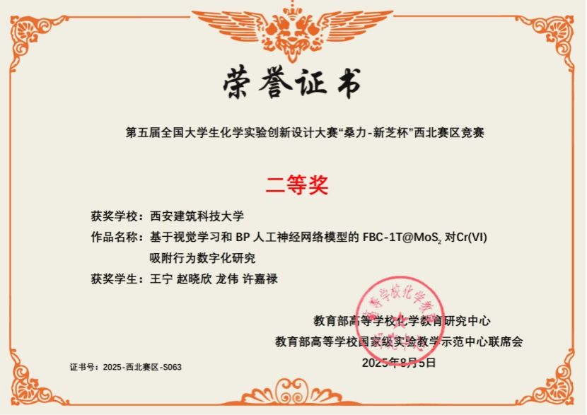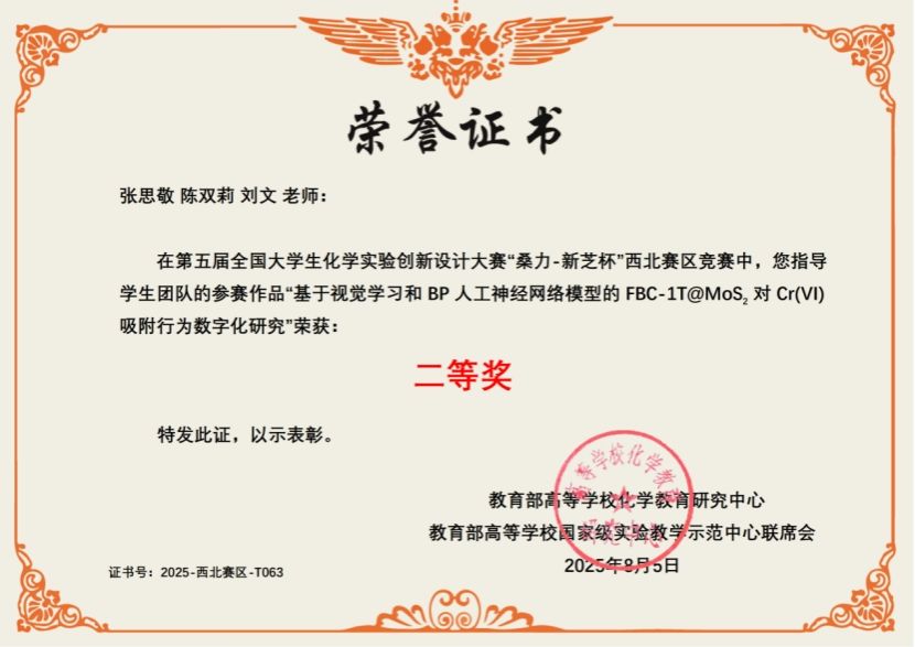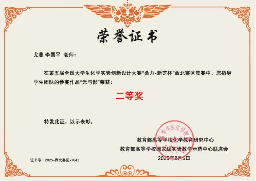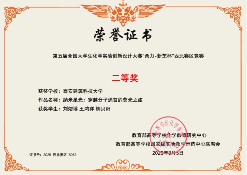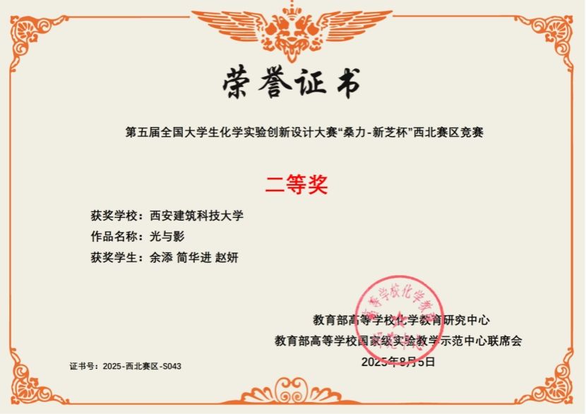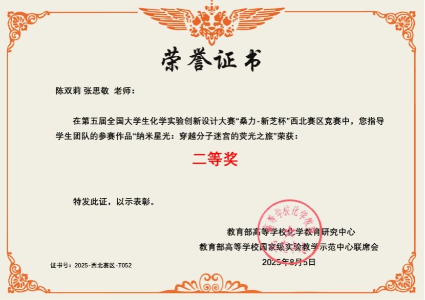 第五届全国大学生化学实验创新设计大赛“桑力-新芝杯”西北赛区竞赛二等奖3项