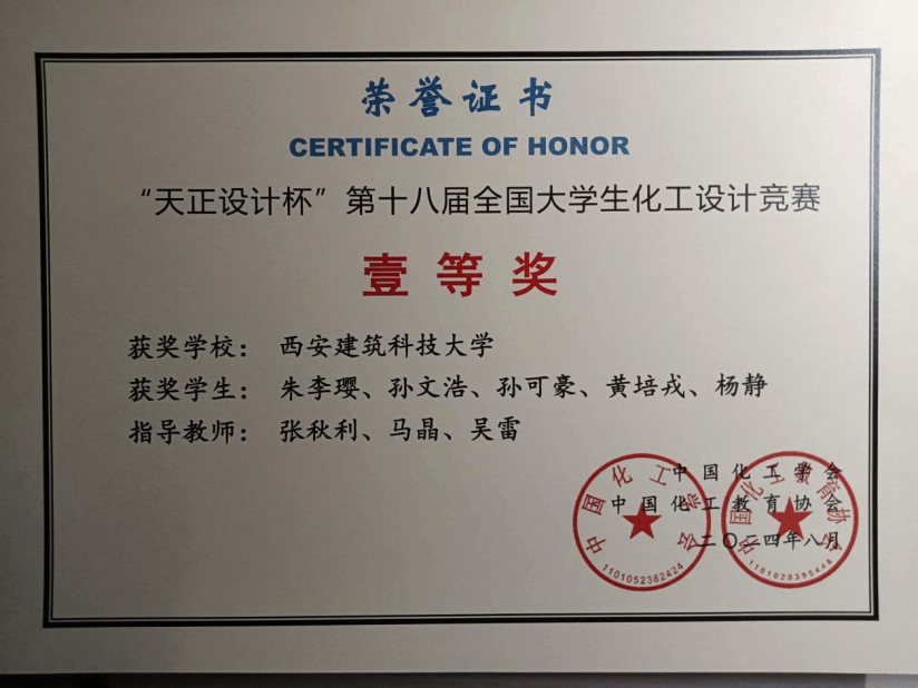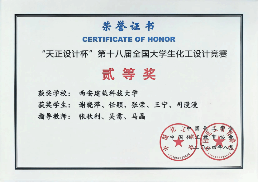 “天正设计杯”第十八届全国大学生化工设计竞赛