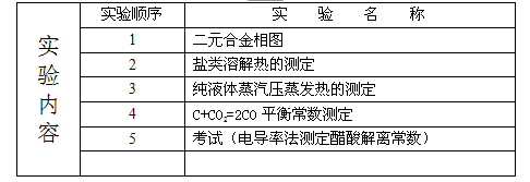物理化学实验课表