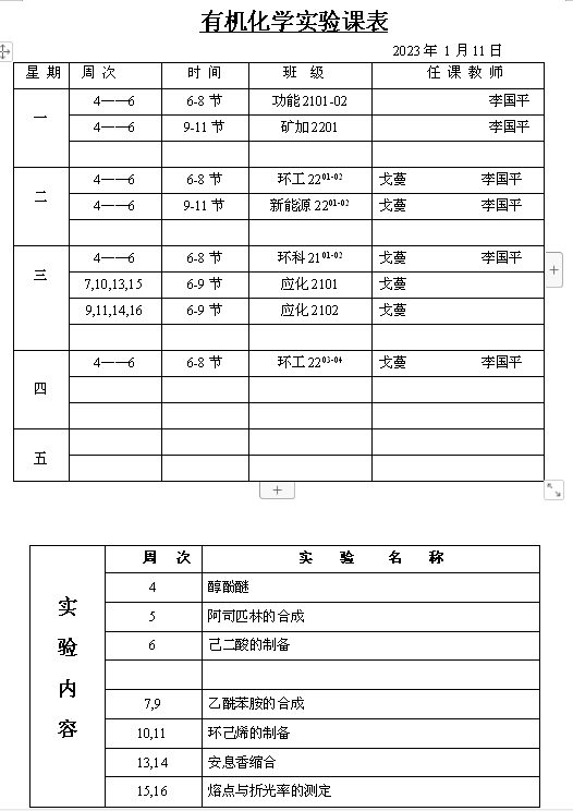 有机化学实验课表-西安建筑科技大学化学实验教学中心