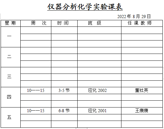 仪器分析化学实验课表-西安建筑科技大学化学实验教学中心