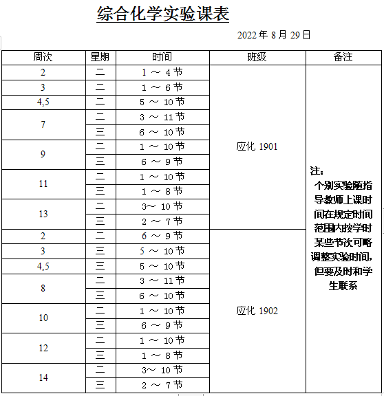 综合化学实验1课表-西安建筑科技大学化学实验教学中心