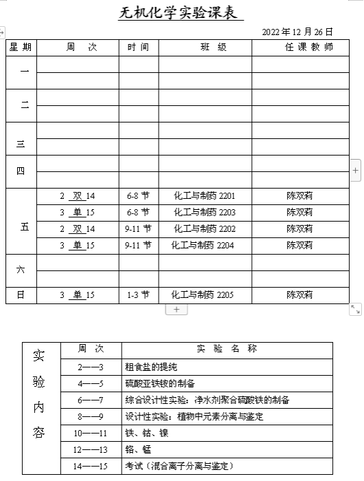 无机化学实验2课表-西安建筑科技大学化学实验教学中心
