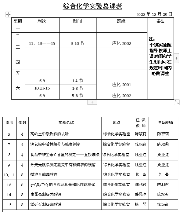 综合化学实验2课表-西安建筑科技大学化学实验教学中心