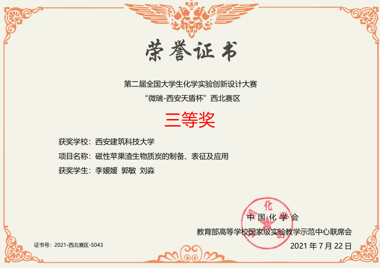 我院组建两支队伍参加了“新创实验设计”的比拼,均以线上答辩方式完成比赛。大赛经过两天激烈的角逐,最终我院1个参赛作品荣获西北赛区大学生化学创新实验设计竞赛三等奖。