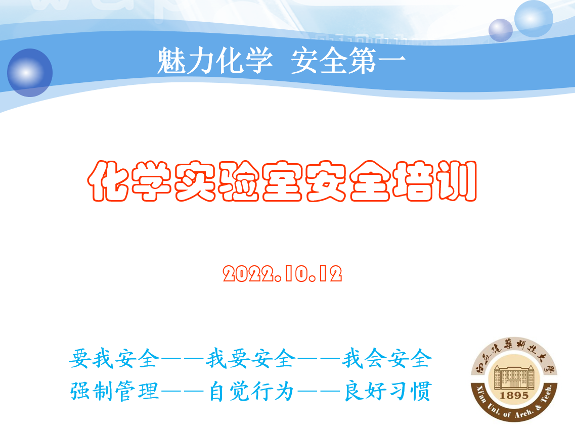 最后,陈双莉老师要求全体同学和教师:思想意识上一定要重视实验室安全;思想上首先要完成从“要我安全“到“我会安全”的转变,真正做到从“强制管理”到“自觉行为——良好习惯”的行为变化,落实好实验室各项安全管理台账制度,加强危险化学品使用、保管以及废弃物的处理回收工作,所有同学、老师要共同配合及时沟通,增强安全责任意识,共同营造安全的实验环境;要时刻把实验室安全放在首位,自觉展开自查自纠,对排查出的实验室安全隐患要及时整改。希望每个同学都能自觉加强实验室安全知识的学习,安全无小事,自觉养成规范操作习惯,争取做到防患于未然,才能最大限度地保护我们自身和他人的人身安全。