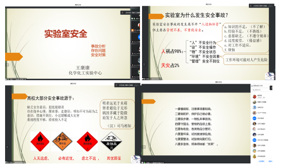 为切实提高我院2022级新生化学实验安全意识,提升安全实验能力,10月12日19:00,化学与化工学院2022级新生实验室安全培训教育大会在腾讯会议进行。学院实验中心主任陈双莉,实验中心副主任王康康,团委书记、研究生辅导员赵志倩,2022级辅导员杨巍鹏及学院2022级全体新生共200余人参会,会议由实验中心主任陈双莉主持。