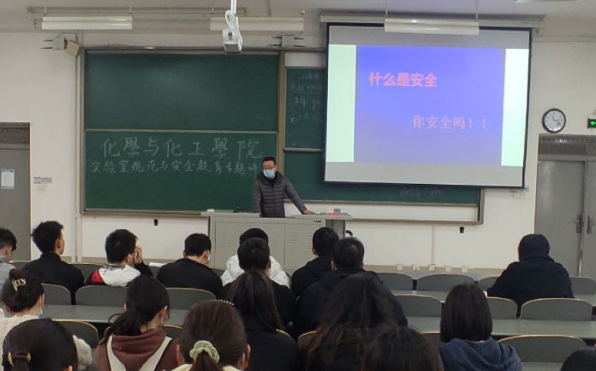 为切实提高我院学生实验室安全意识,规范实验安全操作,增强实验安全能力,3月24日上午10:30和中午1:00,化学与化工学院师生实验室安全教育专题讲座分别在学府城12-201和12-101进行。学院党委副书记、副院长杨占林,副院长王耀,实验中心主任陈双莉,实验中心副主任王康康,以及学院全体教师、研究生和19级本科生共300余人参会,会议由学院党委副书记杨占林主持。