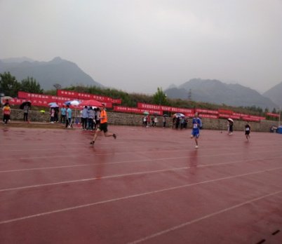 4月20日,运动会比赛的第二日,天空下起了淅淅沥沥的小雨,真个“腾云似涌烟,密雨如散丝。”雨滴润湿了红白跑道,而运动员们在赛场上奋勇拼搏。我院的刘文老师在400米的跑道无惧风雨,冲刺到终点,获得季军的好成绩。400米比赛一结束又转战“足球射准”比赛,只见刘文老师与学生之间闪转腾挪,传切配合,一脚脚射门得到了一阵阵喝彩。