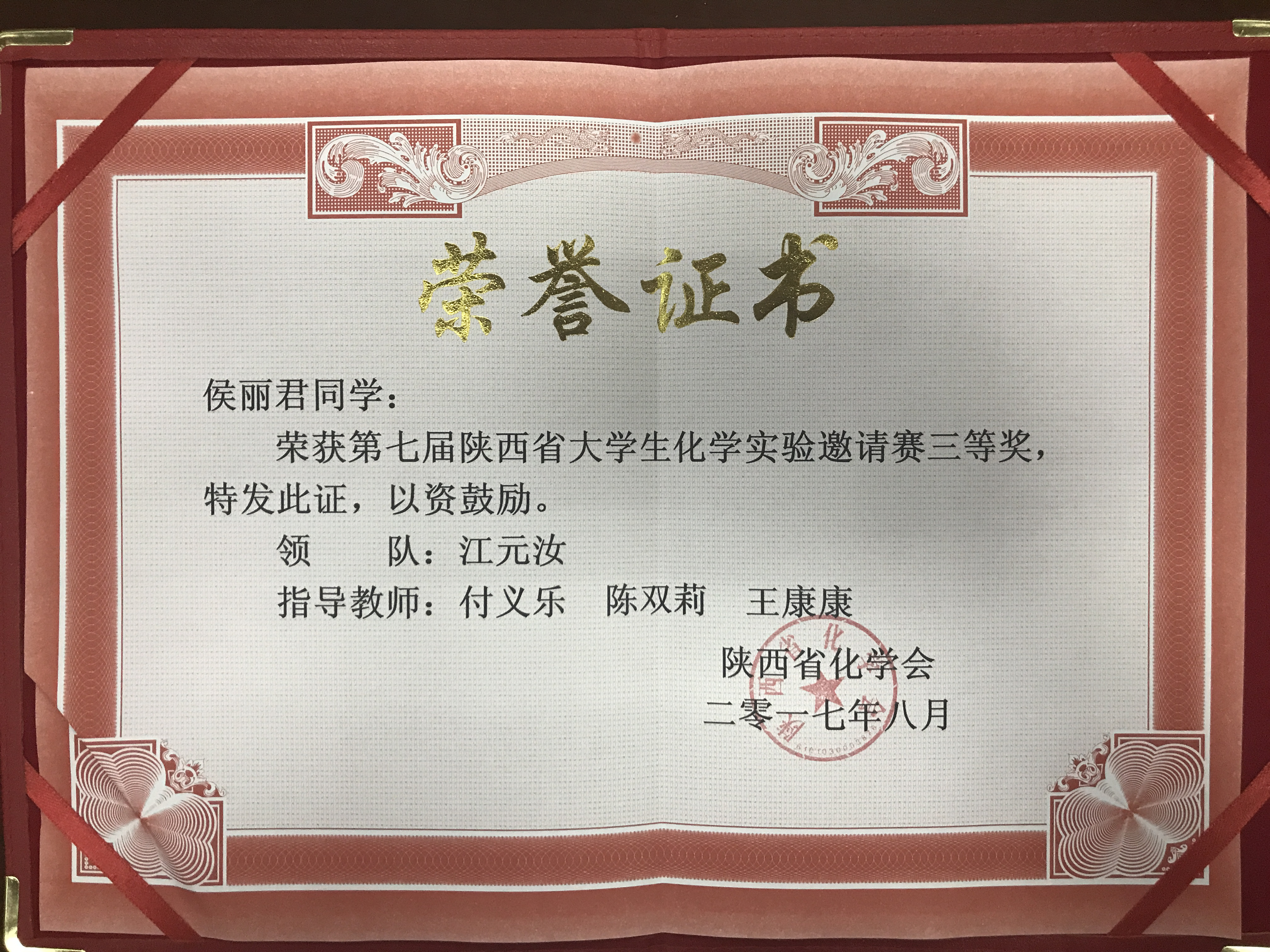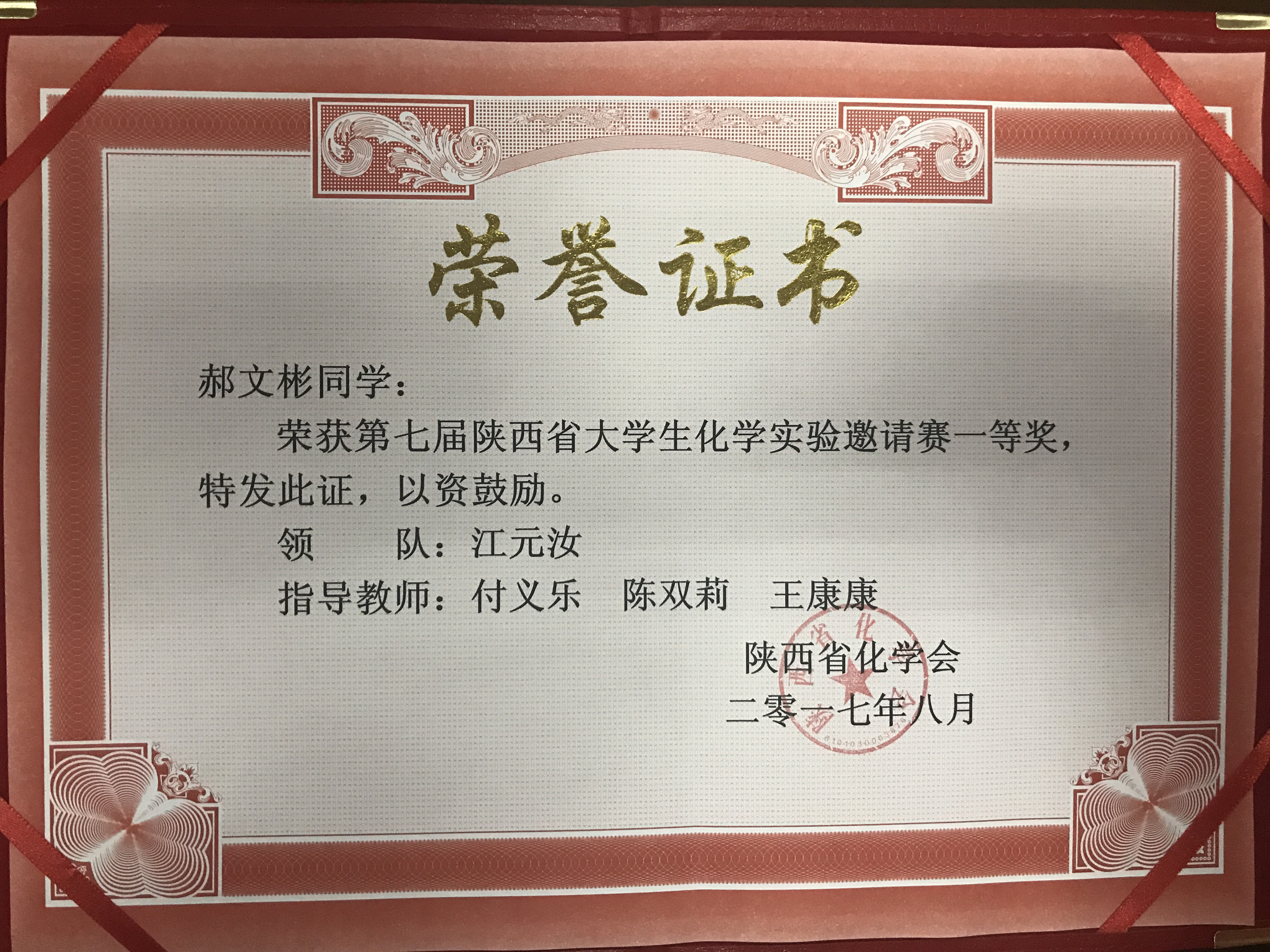 我院学生在第七届陕西省大学生化学实验邀请赛中喜获佳绩