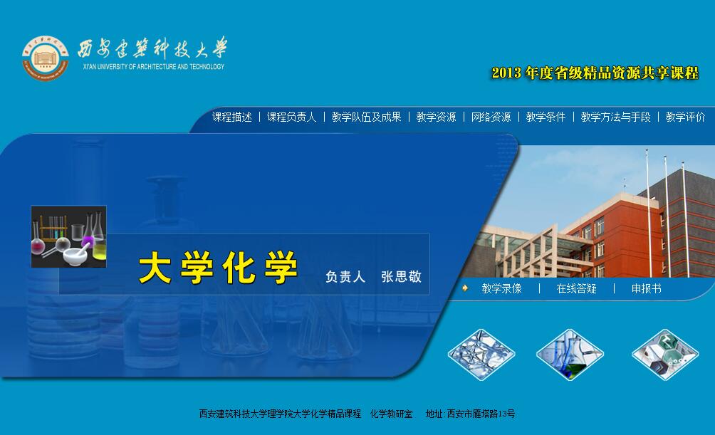 省级精品课程-西安建筑科技大学化学实验教学中心