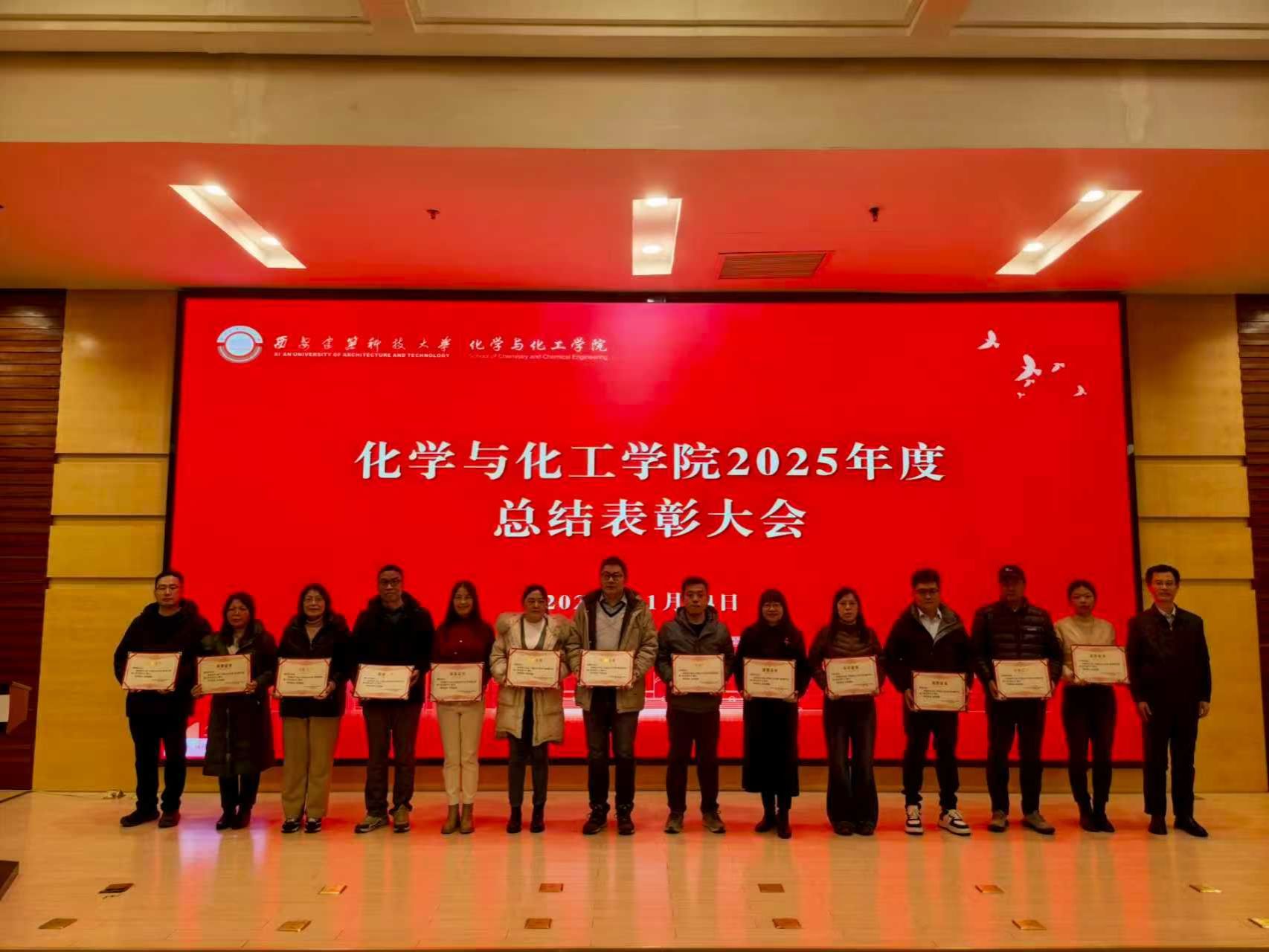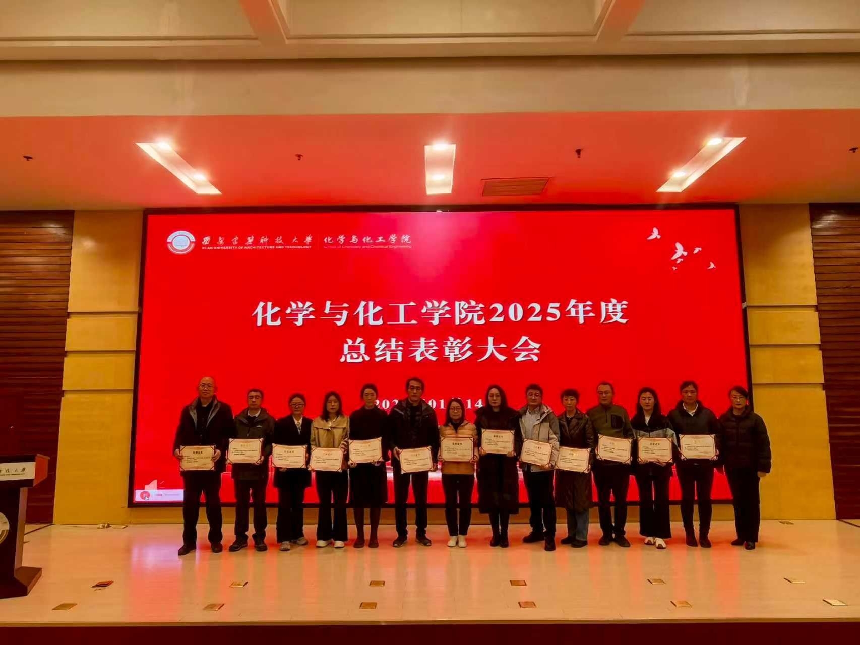2026年1月14日下午,化学与化工学院2025年度总结表彰大会在工科楼三楼报告厅举行,学院全体教职工参加。