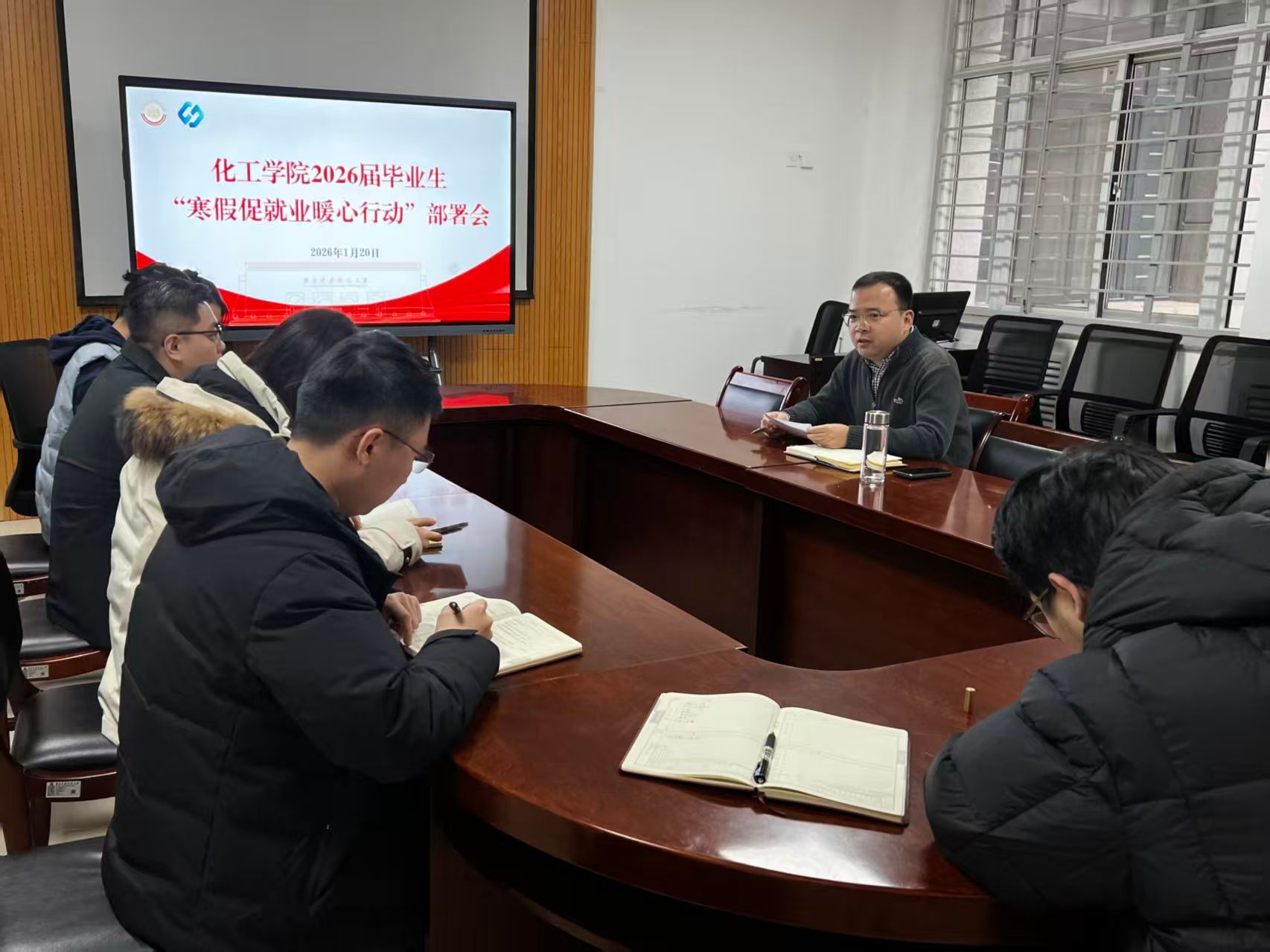 1月20日上午,化学与化工学院在草堂校区学府城6-106会议室召开2026届毕业生“寒假促就业暖心行动”部署会。学院全体专兼职辅导员参加会议。会议由院党委副书记黄河主持。