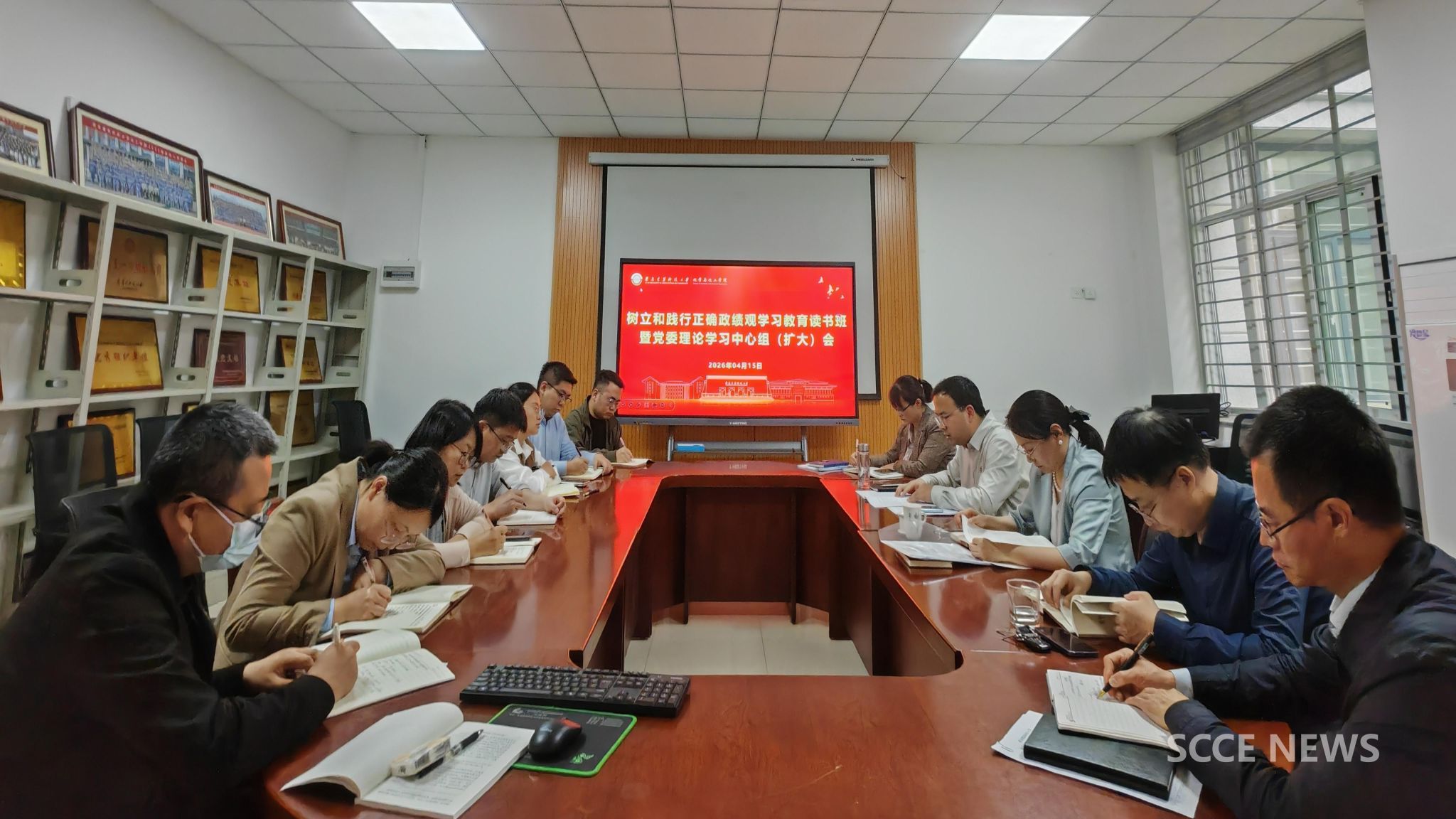 4月15日下午,化学与化工学院召开党委理论学习中心组(扩大)学习会暨树立和践行正确政绩观学习教育读书班(第二期)。全体党委委员、各党支部书记参加学习,会议由院党委书记张卫华主持。