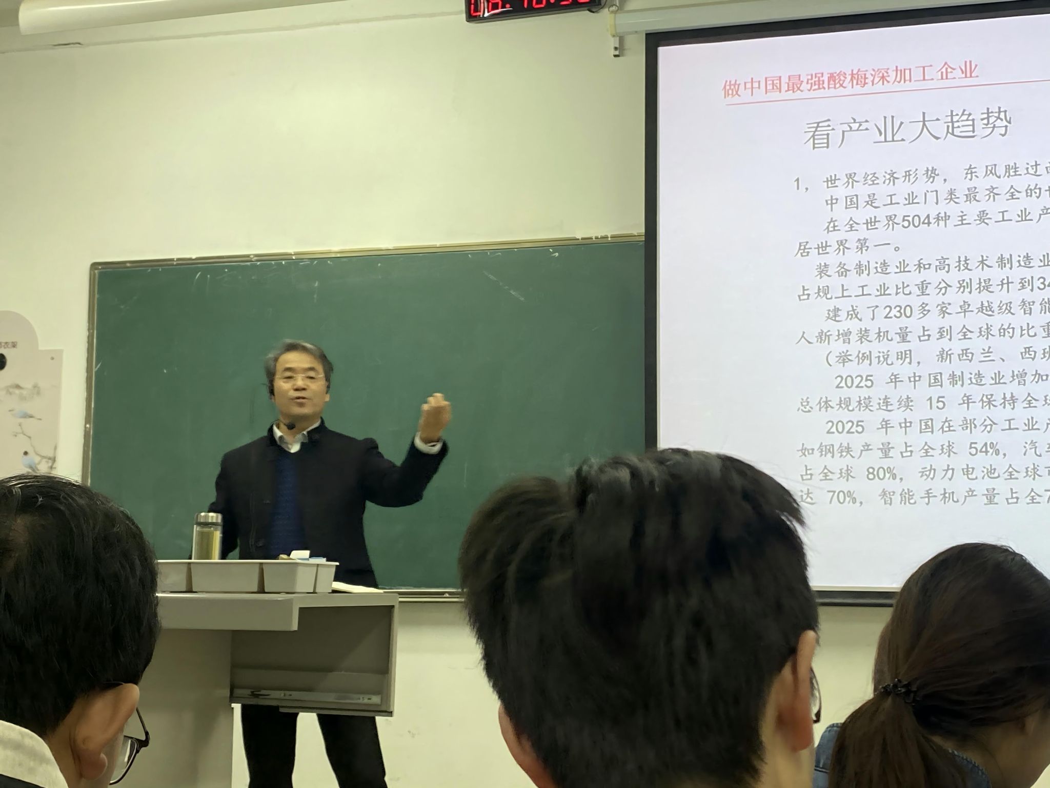 针对行业前沿动态,张祯锋董事长分享了专业见解。他指出,2025年中国制造业增加值占全球比重约30%,总体规模连续15年位居世界第一,钢铁、汽车等重点工业产品产量保持全球领先。“十五五”规划明确了传统产业升级等三大发展路径,装备制造业和高技术制造业比重持续提升,数字化转型成效显著,产业升级为创新创业带来广阔空间。在个人发展方面,他强调“适合自己的才是最好的”,鼓励学生根据自身特点选择发展路径,无论是自主创业还是专业研究,都要与产业需求紧密结合。