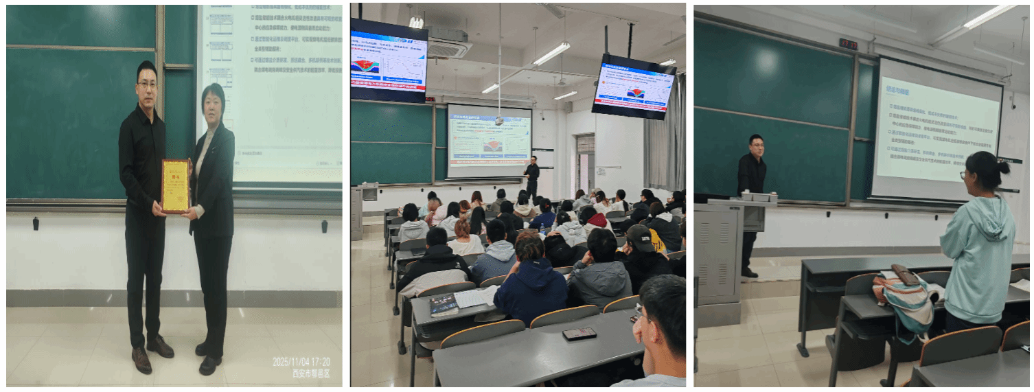 活动伊始,学院教师代表于丽花为张贵泉高级工程师颁发了“企业导师”聘书,标志着本次校企协同育人活动正式启动。报告中,张贵泉高工结合自身丰富的行业实践经验,系统介绍了熔盐储能技术的发展现状与应用前景。他首先概述了热能、机械能等主流储能技术的特点,随后重点解析了熔盐储能作为规模化、低成本储能解决方案的独特优势。他指出,该技术通过介质创新、系统优化耦合等途径,能够有效提升能量转换效率、降低运营成本,并在支撑煤电机组实现低碳灵活调节、增强电网稳定性方面发挥重要作用。他还强调,熔盐储能技术与火电灵活性改造相结合,不仅可创造显著经济效益,还能提升重点负荷区域的应急保障能力,为构建以新能源为主体的新型电力系统提供稳定支撑。他还分享了通过智能化运维推动煤电机组低碳转型,以及依托持续技术创新提升系统整体能效的发展方向。