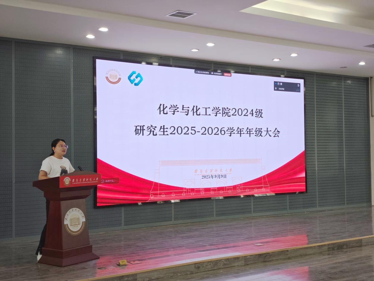 化学与化工学院于2025年9月9日上午在学府城2-304召开2024级研究生2025-2026学年年级大会。研究生辅导员赵志倩,2024级全体研究生参会,本次会议由研究生兼职辅导员冯彧晗主持。