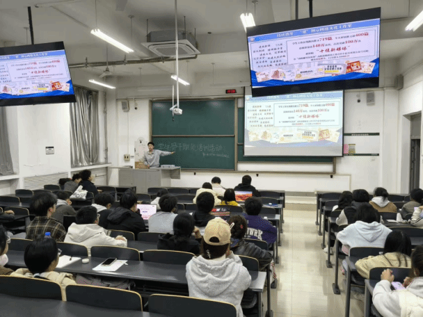 培训伊始,裴敦杰讲述了PPT制作的核心价值与重要意义,并结合自身从“PPT 新手”成长为“设计能手”的经历,分享了循序渐进的学习路径与方法。随后,他结合学生工作汇报、活动策划展示等实际场景,通过拆解实操案例,讲解了PPT设计逻辑、版式布局、色彩搭配等关键知识。同时为强化培训实效,现场设置互动问答与即时操作环节,针对参训学生提出的“多图排版混乱”“数据可视化不清晰”等常见问题,裴敦杰逐一解答并指导调整方法,帮助学生快速将理论知识转化为实操能力,切实解决了同学在PPT制作中的实际问题。