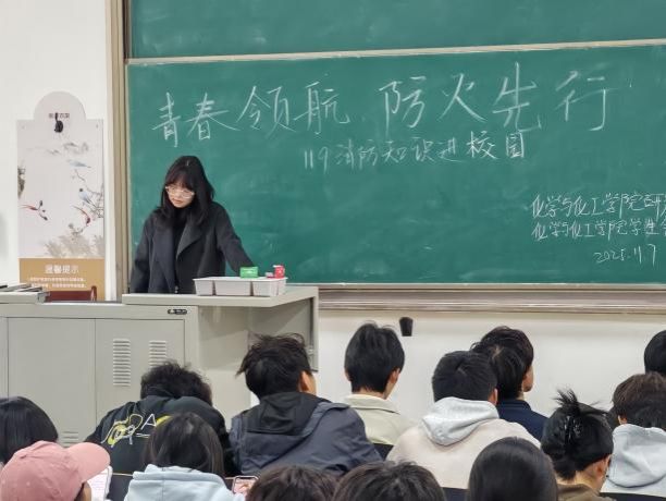 为增强同学们的消防安全意识,普及消防安全知识,提升应急自救能力,化学与化工学院学生会、研究生会于11月7日在学府城9-114进行了“119青春领航,防火先行”专题宣讲活动。