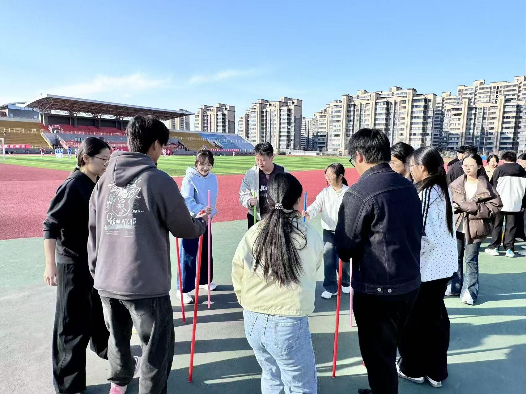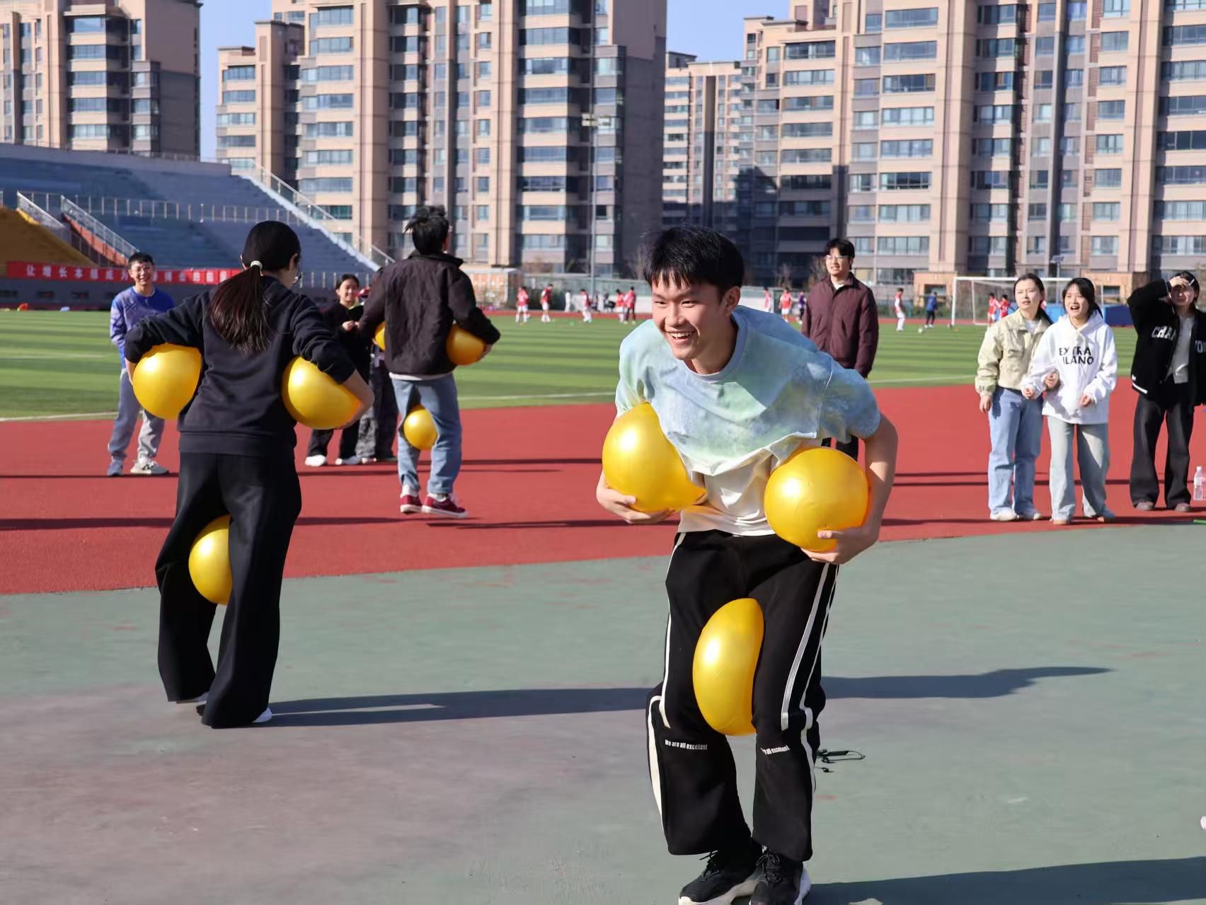 本次趣味团体赛以“趣味竞技,聚力同行”为核心,设置暖场游戏与四项趣味项目,化工学院本科生组队参赛,现场氛围热烈高涨。暖场游戏“一元五毛”快速破冰,同学们随机组队、反应竞速,瞬间激活现场活力;随后达芬奇密码、企鹅漫步、巨人脚步、不倒森林四项项目依次开展,翻牌比拼显记忆默契,夹球前行展平衡技巧,同步迈步炼协作节奏,持杆接力验团队同心,各队伍凝心聚力、奋勇争先,奔跑与欢笑交织,呐喊与喝彩相融,尽显化工学子青春朝气。运动场上,同学们精神抖擞、协作争先,将“运动、健康、快乐”的氛围拉满。
