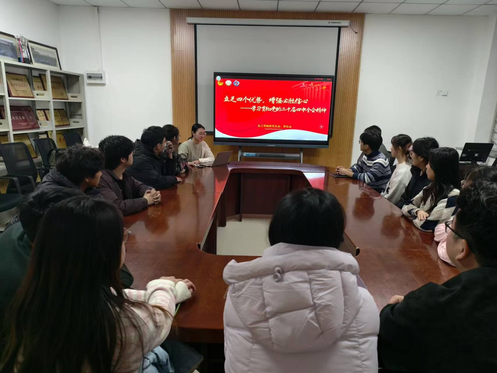 2026年1月6日,化工学院研究生会、学生会在学府城6-106组织开展“立足四个优势,增强必胜信心”——学习贯彻党的二十届四中全会精神专题学习会,化工学院研究生会、学生会成员参加会议,会议由研究生会孟叶雯主持。
