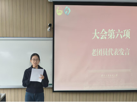 随后,老团员代表朱浩琦分享了自己在团组织中的成长经历与收获感悟,勉励新团员们要珍惜团员身份,牢记初心使命,以身边榜样为标杆,在学习生活中勇挑重担、甘于奉献,让青春在奋斗中绽放绚丽光彩。新团员代表王懿德发言,表示今后将牢记入团誓言,时刻以团员标准严格要求自己,勤奋学习知识,锤炼过硬本领,积极投身志愿服务与校园建设,用实际行动诠释新时代团员的责任与担当。