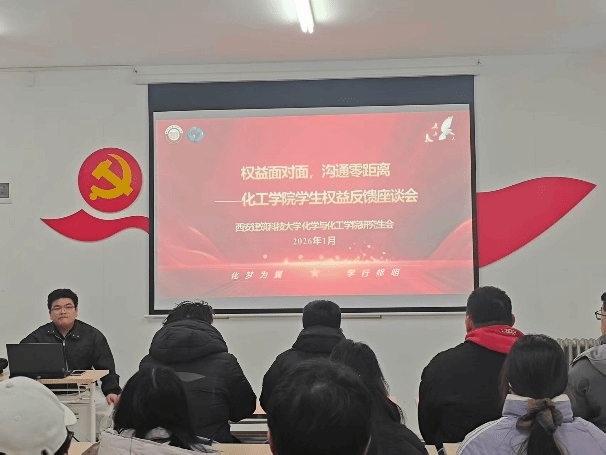 1 月 16日下午,化工学院研究生会、学生会在紫阁一栋 “一站式” 学生社区举办 “权益面对面” 交流座谈会。学院研究生会成员、各年级生活委员参会,会议由学院研究生会成员成佳铖主持。