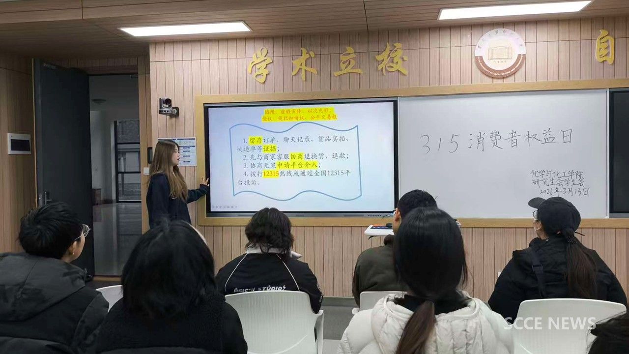 3月15日,化工学院研究生会、学生会于学府城16-108联合开展“3·15消费者权益”讲座,面向学院生活委员开展消费权益知识普及与实操培训。本次活动由生活权益部工作人员胡梦微担任主讲。