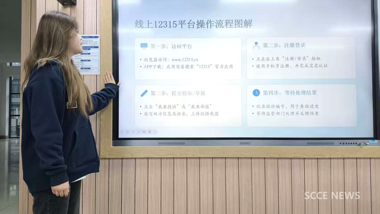 胡梦微围绕消费者五大权益、12315维权渠道使用及生活委员权益工作职责等方面展开讲解,结合大学生网购、校园周边消费等常见场景,通俗解读了安全保障权、知悉真情权等核心权利,并通过“真伪大辨别”“权益案例‘诊脉’”等互动环节,帮助同学们掌握基础维权技能,提升真伪鉴别与问题处理能力。现场互动氛围浓厚。